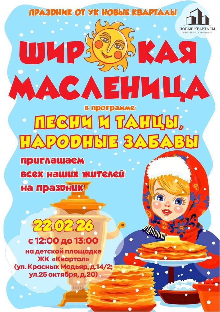 Управляющая компания НОВЫЕ КВАРТАЛЫ приглашает всех жителей на народные гулянья!