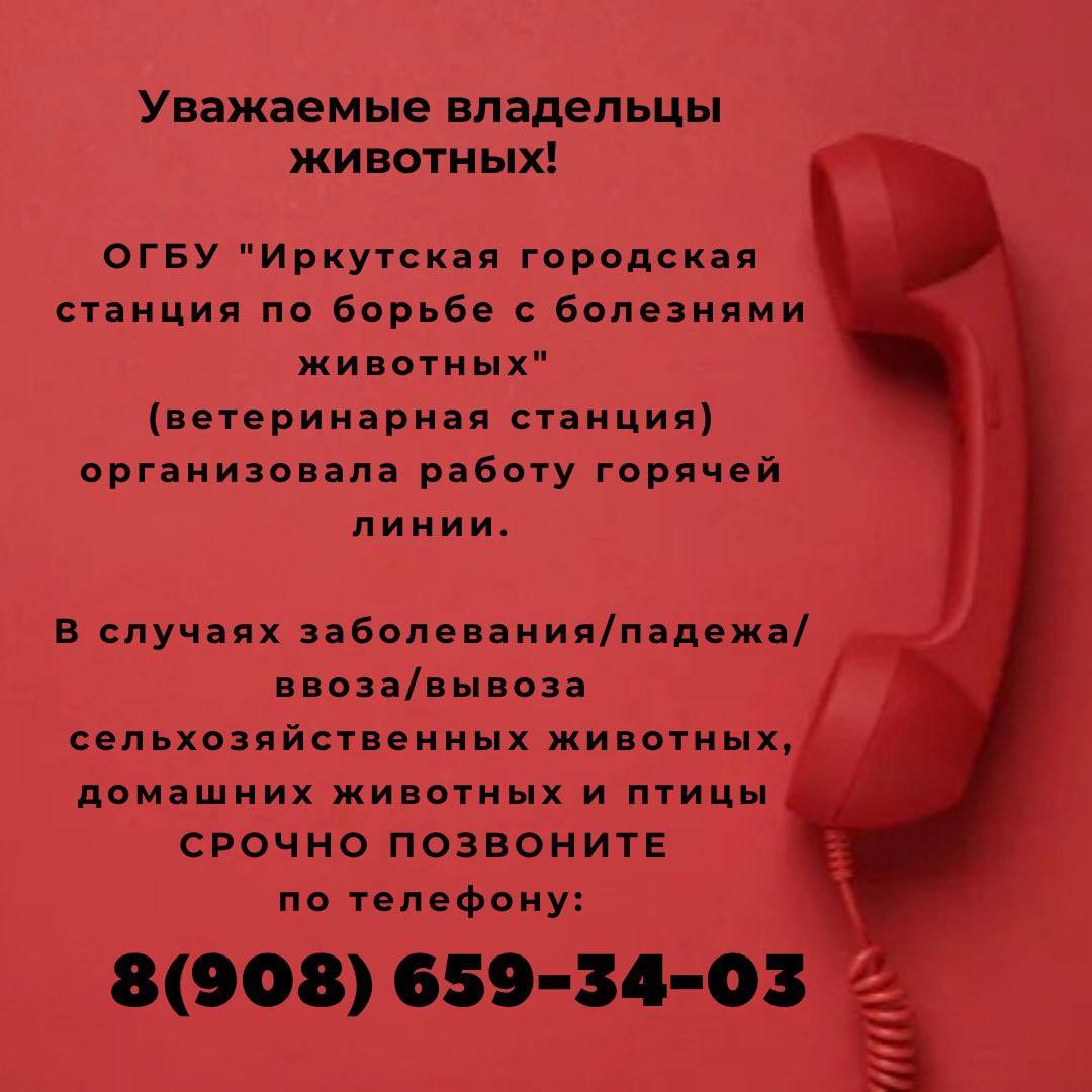 ОГБУ «Иркутская городская станция по борьбе с болезнями животных» организовала работу горячей линии!