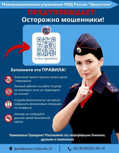 Муниципальное управление МВД России «Иркутское» предупреждает: осторожно, мошенники!